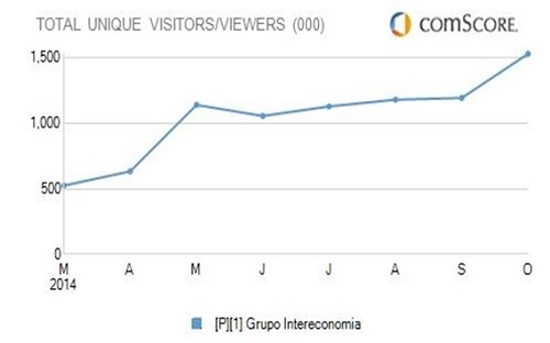 Los medios digitales del Grupo Intereconomía, dirigidos por Julen Ariza, han crecido un 28% en usuarios únicos entre octubre y septiembre, según comScore. Recibieron en octubre 1.530.000 usuarios únicos, 4.844.000 visitas (+12%) y 11 millones de páginas vistas.