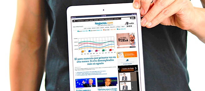 4-09-2014. El portal de información económica del Grupo Intereconomía, Negocios.com, ha doblado su tráfico vía dispositivo móvil en tan sólo un mes, al alcanzar en julio las 105.000 visitas, según los últimos datos de comScore. Supera, así, a otros competidores, como Libre Mercado o Reuters.
