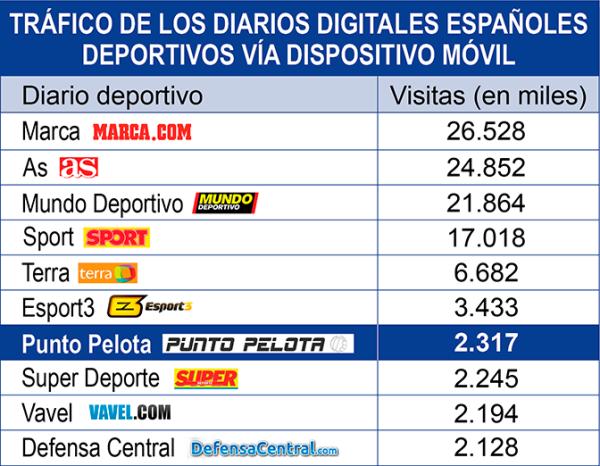 5-06-2014. La web deportiva del Grupo Intereconomía, Punto Pelota (www.puntopelota.es), es el noveno diario digital español de información deportiva en tráfico recibido y el séptimo en visitas vía dispositivo móvil, según los últimos datos ofrecidos por comScore.